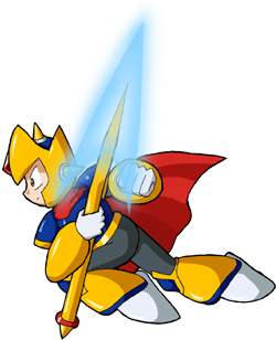 In addition to Mirror Buster, he also carries a spear which can be considered his other primary weapon, used for melee combat with a number of techniques to match. He also has a standard Buster just in case things get really hairy.
